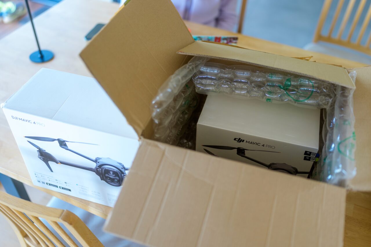 Oui, oui, regardez : dans le carton il y a un deuxième carton, qui est celui d'un Mavic 4 Pro neuf, encore sous blister. Assez bluffant !