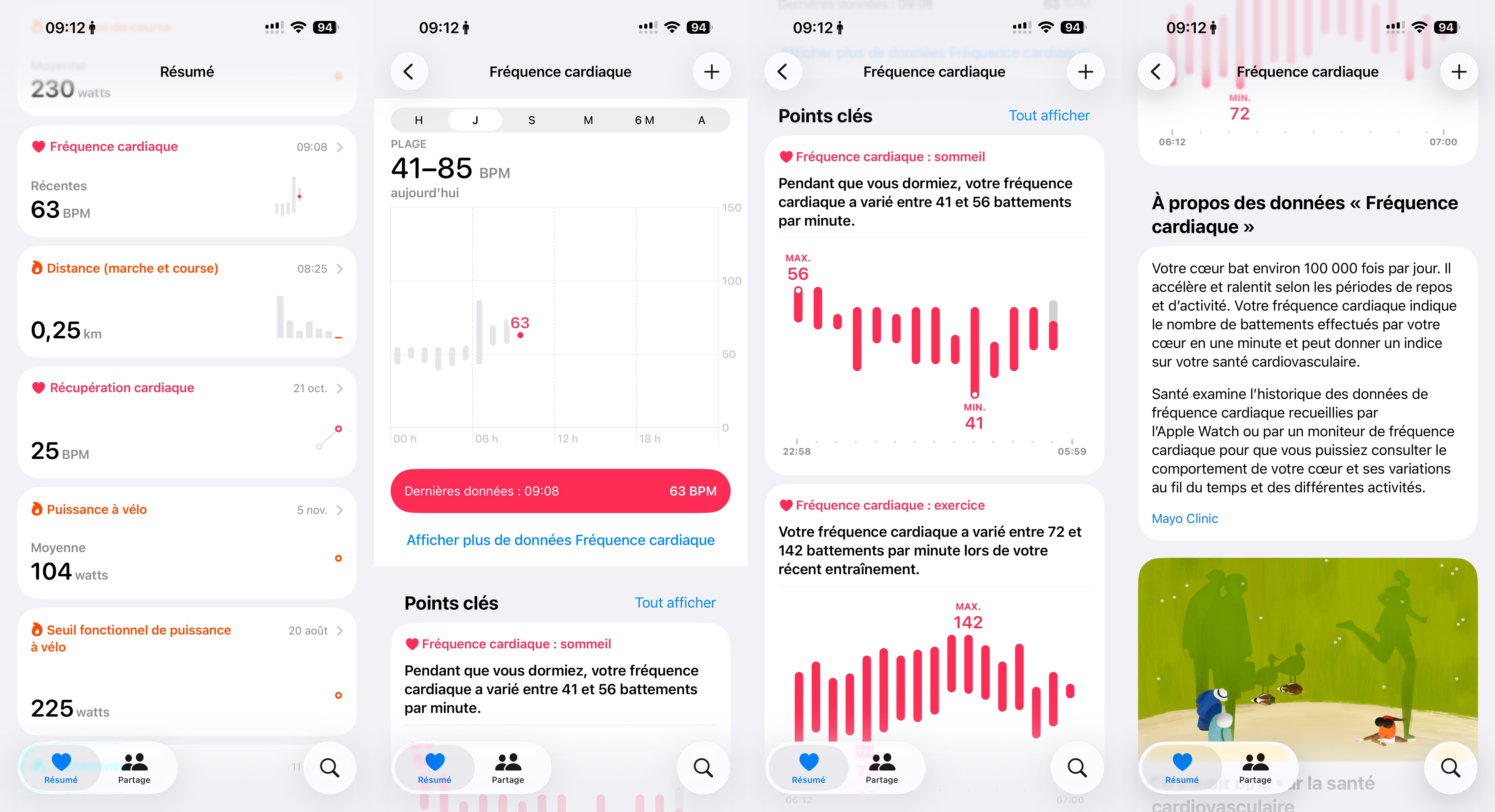 L’onglet sommeil propose une note de la qualité du sommeil, comme le font beaucoup d’applications. Toujours pareil, le petit widget Apple Intelligence fait du bien et permet de comprendre en quelques mots simples ce qu’il se passe.