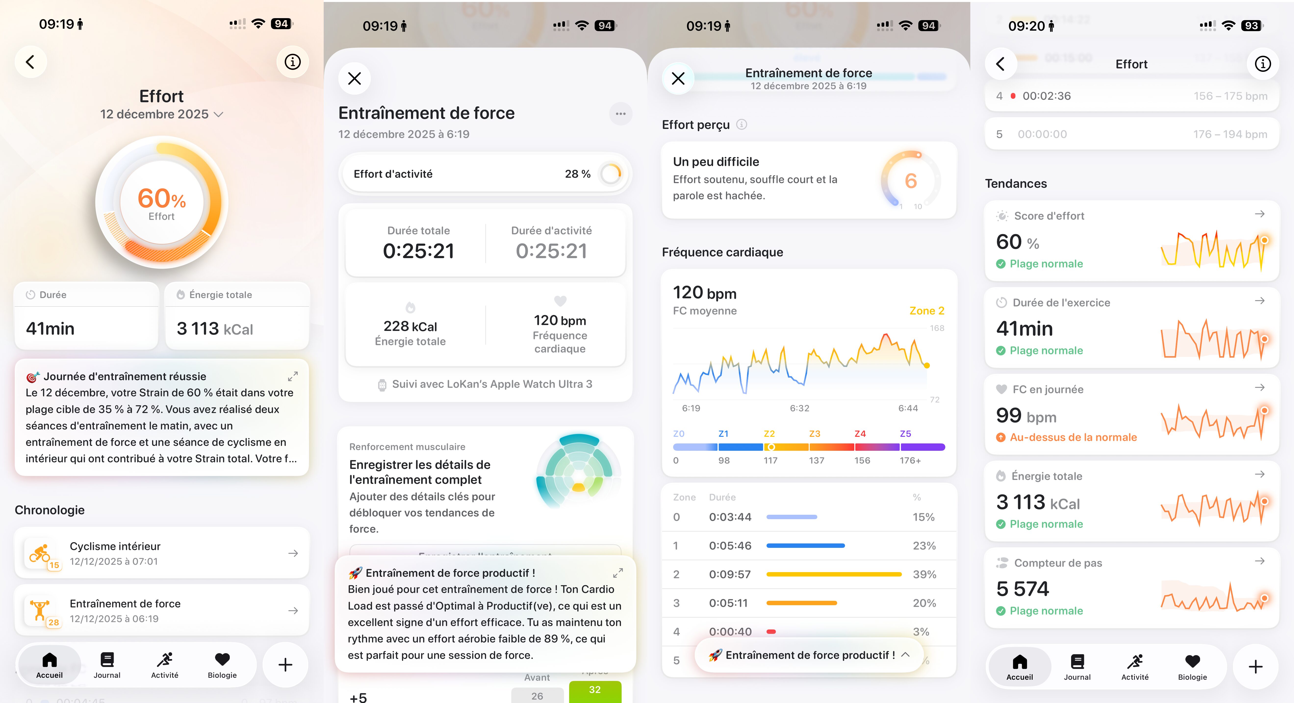 La section effort a pour but de nous indiquer “à quel point on peut y aller”. C’est une recommandation et un bilan des efforts réalisés sur la journée.