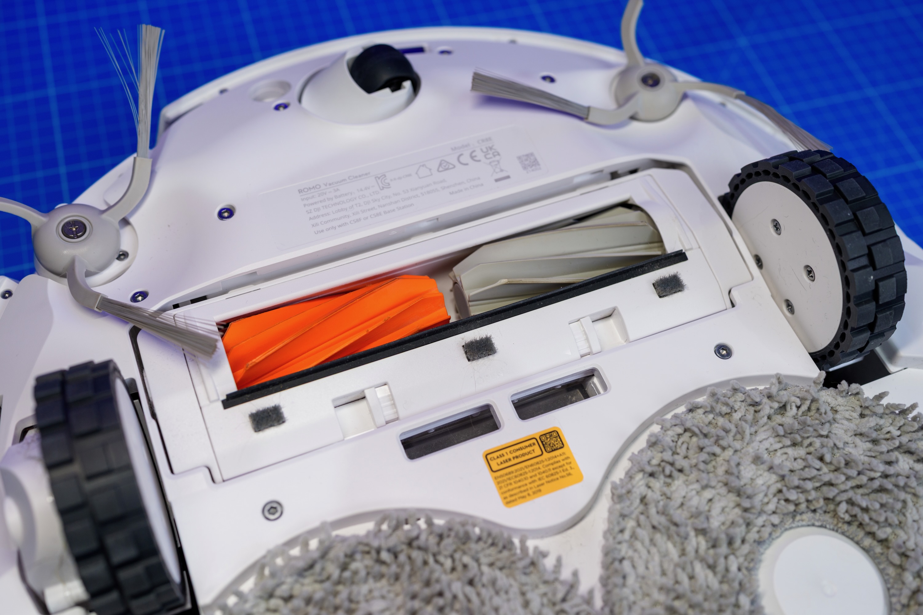 La fréquence de rotation des brosses latérales n’est pas trop rapide ce qui évite de projeter les détritus au loin : le ROMO les remets simplement dans son axe de passage et les aspire sans faire de bruit.