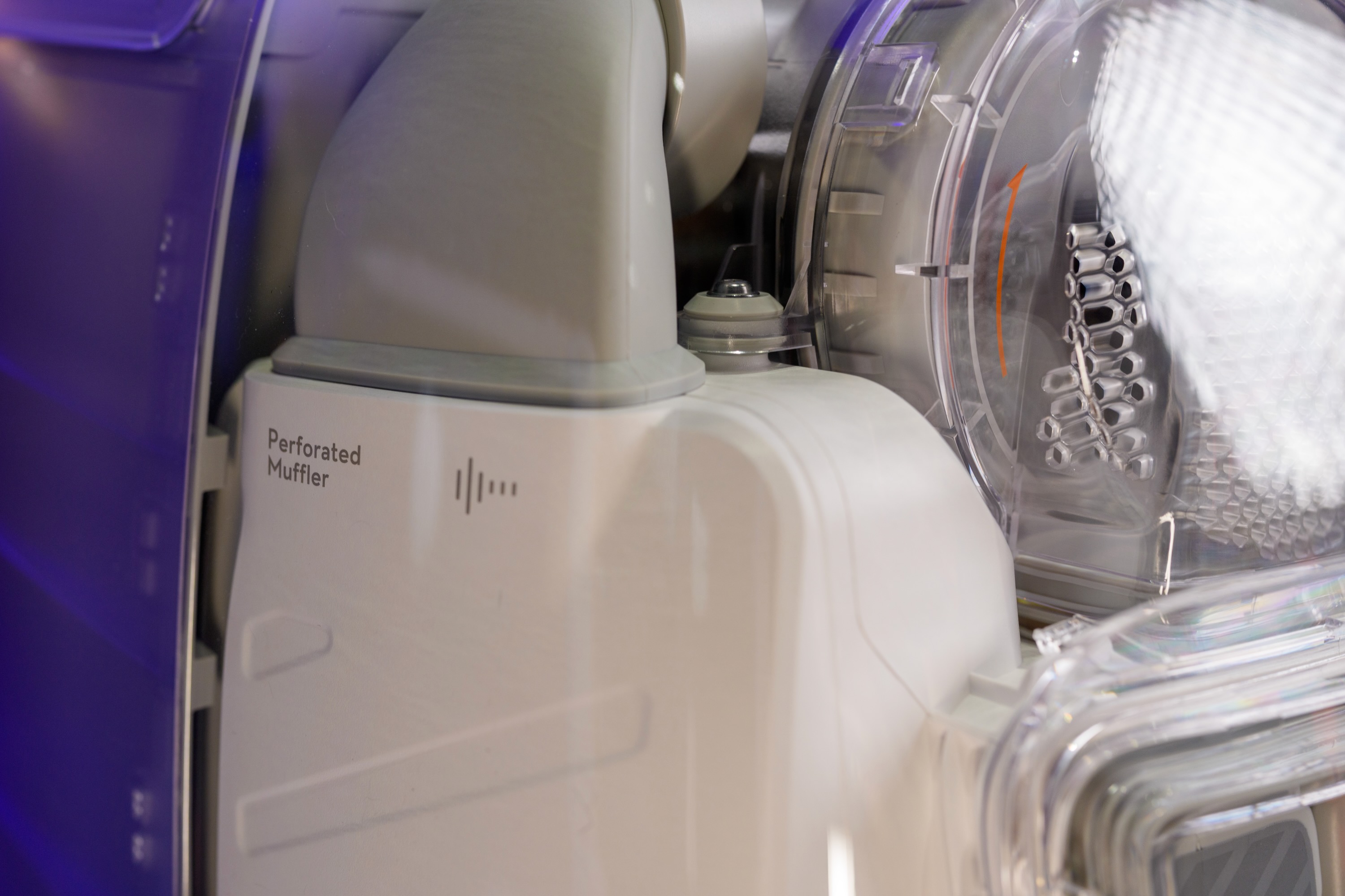 Des "silencieux" sont présents sur la base et sur le robot pour réduire le bruit