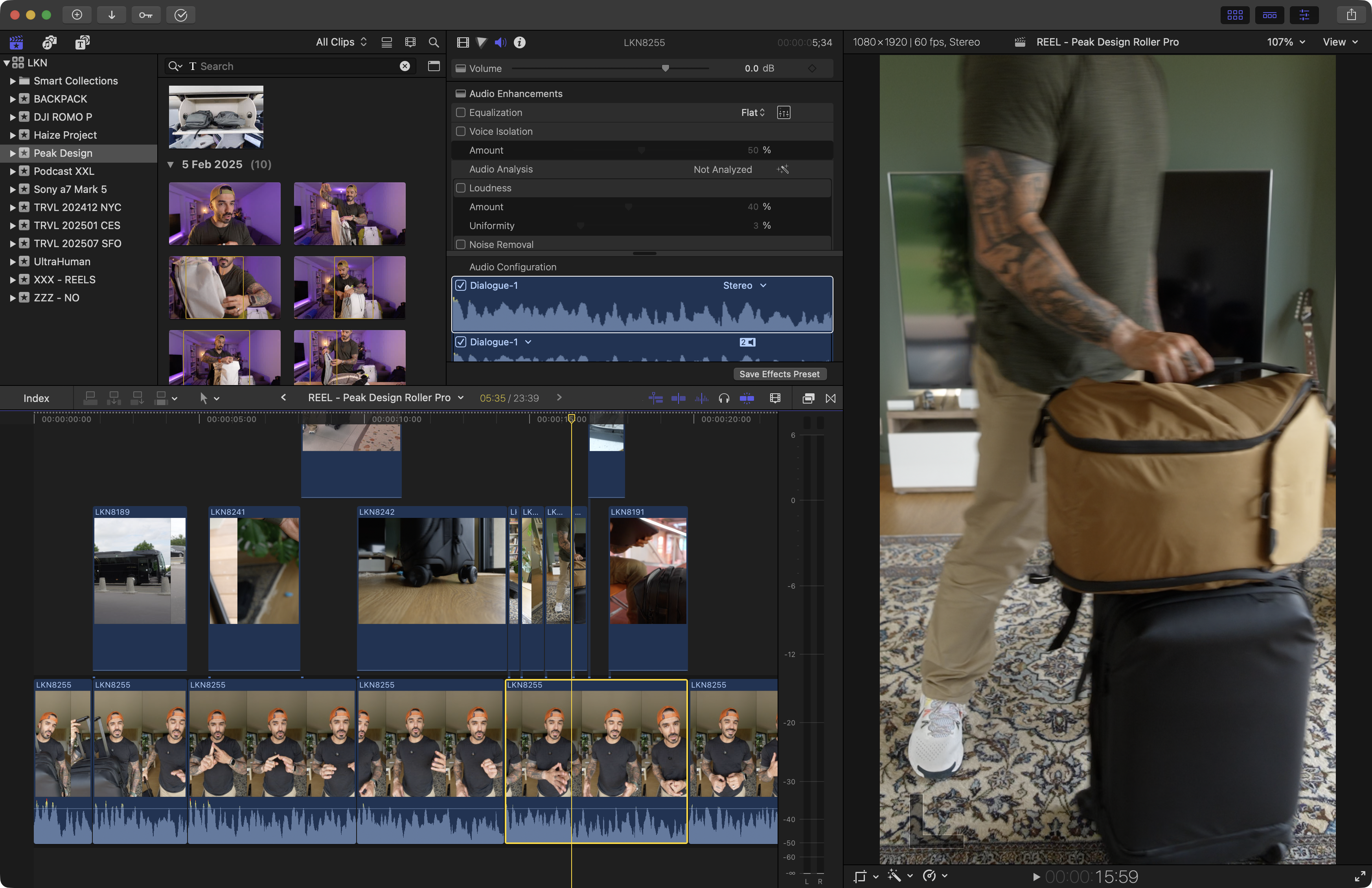 Un des plus gros problèmes que je rencontre - et je suis d’accord que c’est peut-être très personnel - c’est le fait que l’interface de Final Cut Pro est dédiée aux formats horizontaux. Bien sûr, l’application de montage vidéo d’Apple est capable de monter des verticaux, mais l’interface n’évolue pas lorsqu’on choisi ce format.