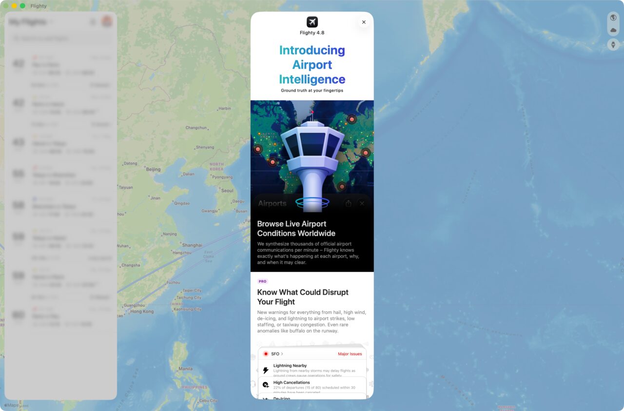 Flighty était déjà l'app de référence pour suivre un vol avec précision, bien avant que la compagnie daigne vous envoyer une notification. Avec la 4.8, elle devient aussi l'app pour comprendre le contexte : pourquoi c'est le bazar, combien de temps ça va durer, et si vos amis sont plus souvent à JFK que vous (spoiler : nope).